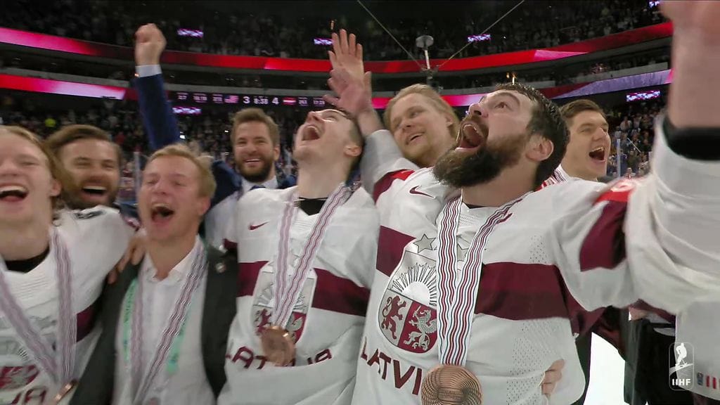 Latvia kaatoi MM-kisojen pronssiottelussa Yhdysvallat jatkoajalla 4–3. Mitali on maalle ensimmäinen jääkiekon miesten MM-tasolla.