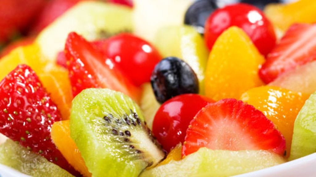 Pilko hedelmät karkeasti palasiksi, kokeile vaikkapa ananasta, omenaa ja appelsiineja.