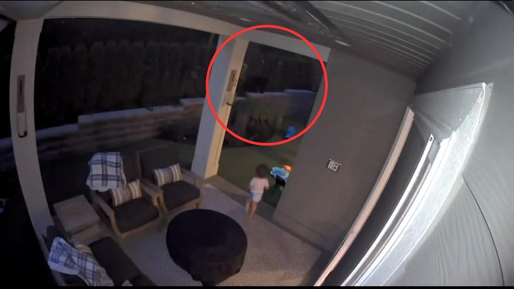 Valvontakameran videolta voi nähdä, että Samantha ryntää salamannopeasti karhua kohti juoksevan tyttärensä perään.