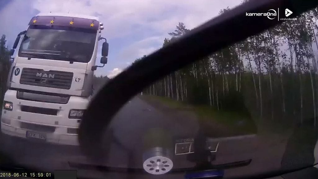 Venäjällä autoilijan kameraan tallentui hurja tilanne, kun vastaan ajanut kuorma-auto karkasi väärälle kaistalle. Henkilöauton kuljettaja ehti väistää raskasta ajoneuvoa viimeisellä mahdollisella hetkellä.