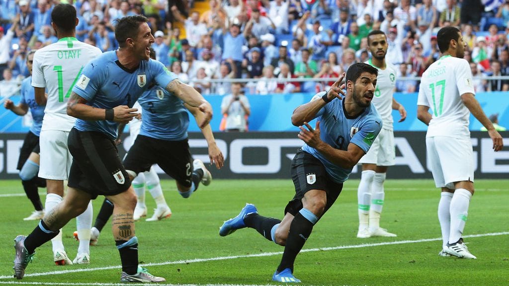 Uruguayn tähtihyökkääjä Luis Suarez avasi maalitilinsä tämän vuoden jalkapallon MM-kisoissa A-lohkon ottelussa Saudi-Arabiaa vastaan.