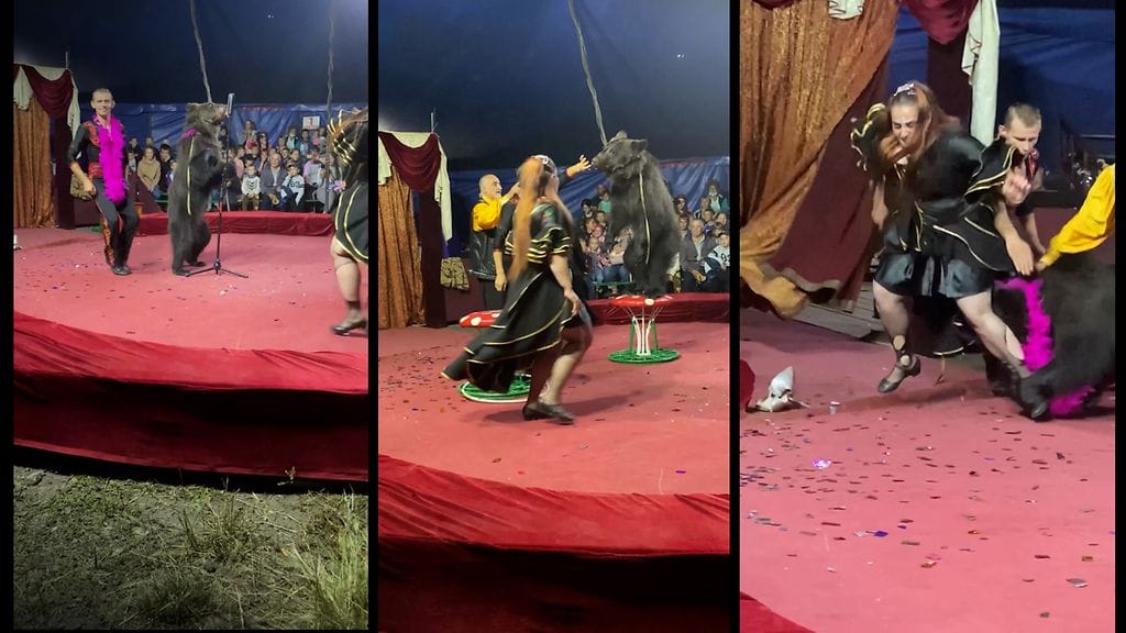 Sirkuksen katsojan kuvaamalta videolta on nähtävissä, kuinka karhu pillastuu ja hyökkää useita kertoja naisen kimppuun esiintymislavalla.