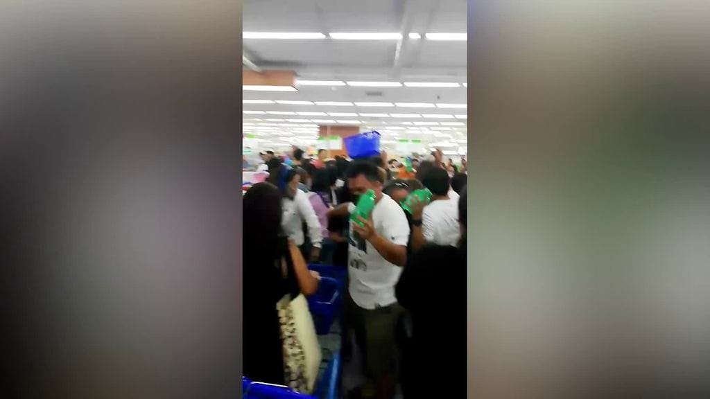 Videomateriaali Manilasta paljastaa, millaisessa kaaoksessa paikalliset shoppailevat koronavirusepidemian takia.