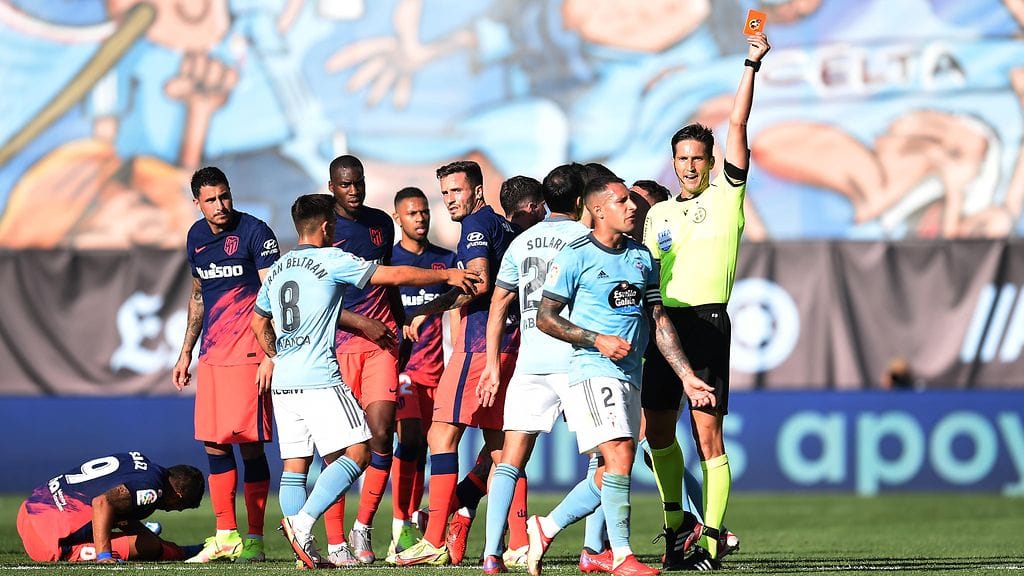 Atletico Madridin ja Celta Vigon välinen La Liga -ottelu riistäytyi täysin käsistä, kun ottelun loppuhetkillä nähtiin peräti kolme punaista korttia.