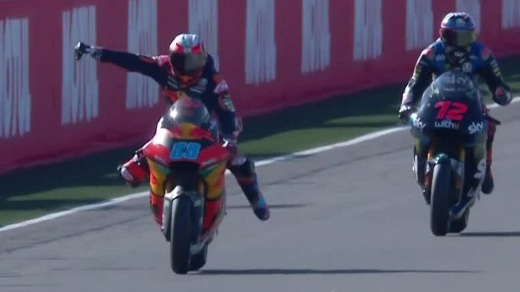 Aki Ajon KTM-tallin Martin onnistui viimeisten mutkien aikana ohittamaan Bezzecchin ja ylsi ruutulipulle ensimmäisenä. Voitto oli espanjalaisen kauden toinen.