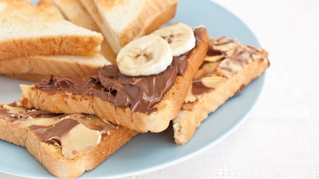Päivä 1: Täysjyväleipää, banaania, pähkinävoita ja maitoa