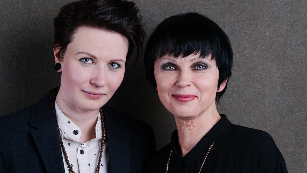 Taiteilijapariskunta Katariina Souri ja Eliya Zweygberg repesivät nauruun nähtyään toisensa vuosia vanhemmiksi maskeerattuina.