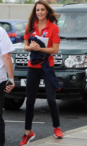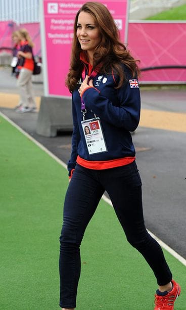 Kate oli pukeutunut brittien kisajoukkueen viralliseen asuun, joka koostui pirteistä kirkkaanpunaisista sekä sinisistä vaatekappaleista. Vaikka Kate on totuttu näkemään huomattavasti tätä juhlallisemmissa asuissa, tunnisti näyttävän herttuattaren heti itsekseen.