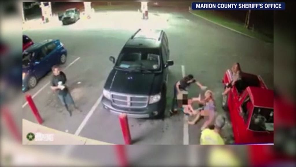 18-vuotiaat nainen ja mies kävivät yllättäen perheeseen käsiksi huoltoaseman pihassa. Videolta nähdään, kuinka nainen hetken keskustelun jälkeen löi ja repi vaaleatukkaista naista aivan yllättäen.
