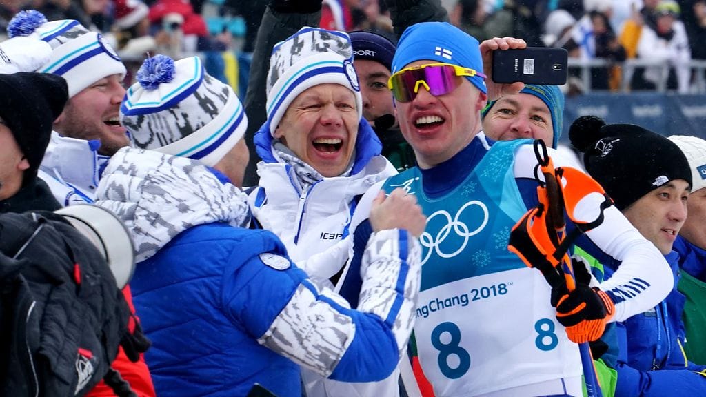 Suomen olympiajoukkue on julkaissut virallisella Instagram-tilillään hienon yhteiskuvan, jossa olympiavoittaja Iivo Niskanen tuulettaa taustatiiminsä kera.