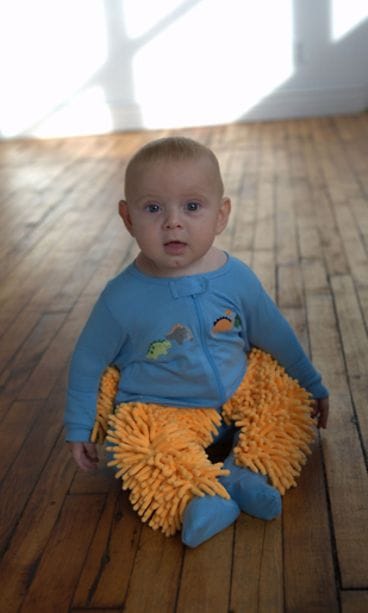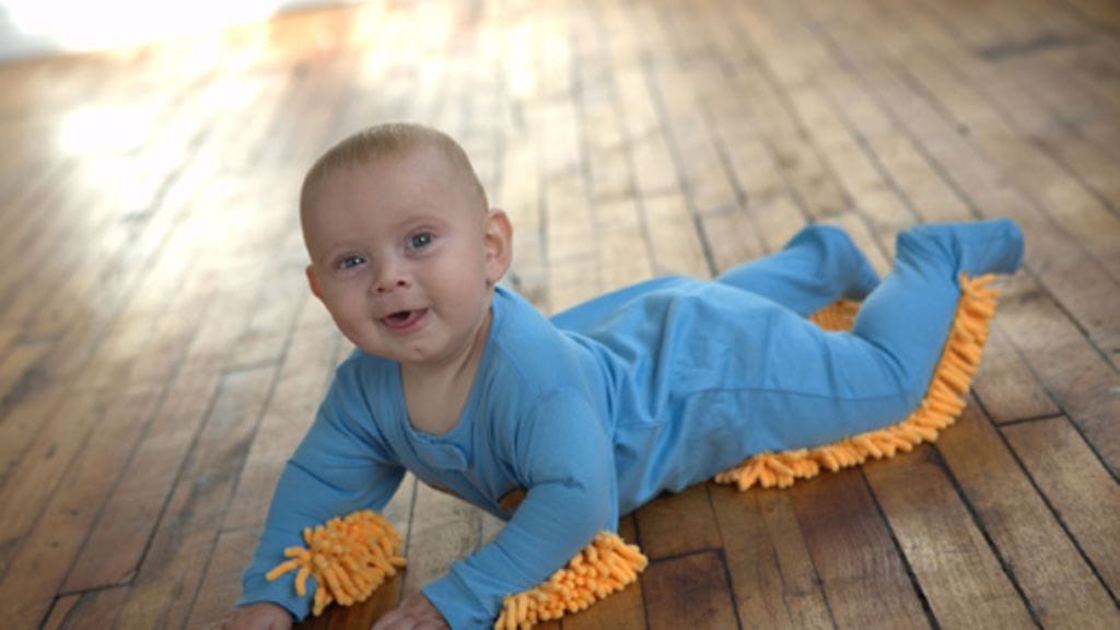 Amerikkalaisfirma on keksinyt, että lattialla ryömivää pienokaista voi nykyisin hyödyntää myös siivousvälineenä, kunhan lapsen verhoaa "vauvamoppiin".