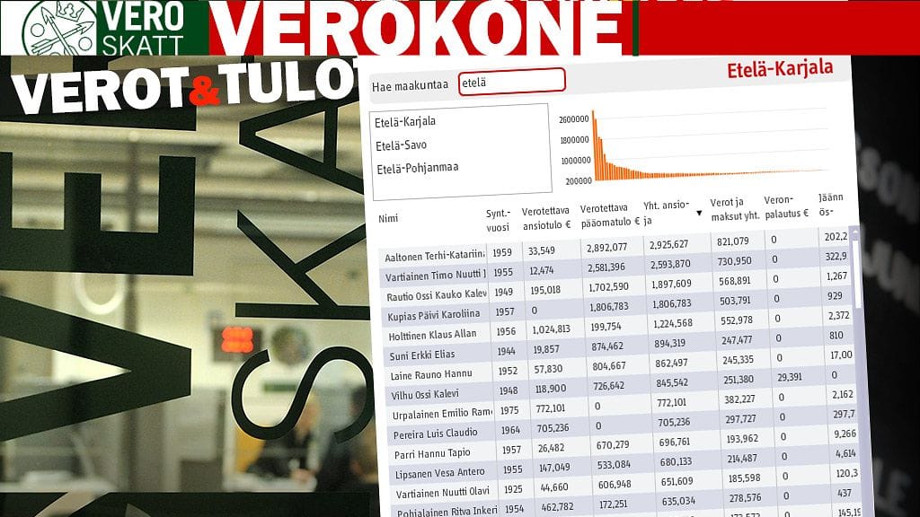 MTV3:n verokone kertoo jokaisen maakunnan 200 kovatuloisinta.