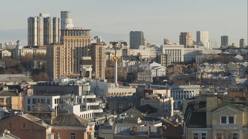 Katso videokuvaa Ukrainan pääkaupungista yläpuolelta maanantai-iltapäivältä.