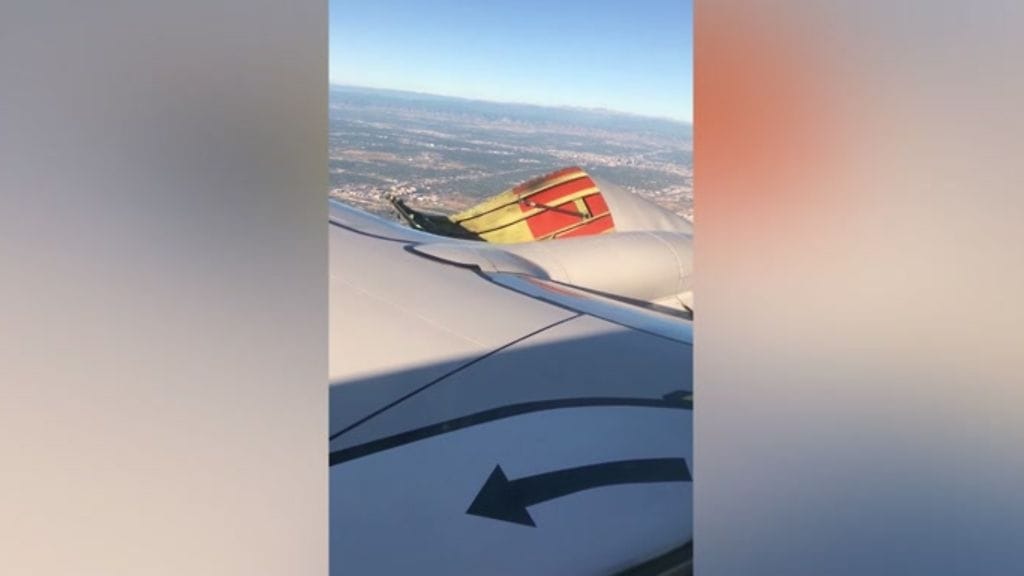 Matkustajan kuvaamalta videolta nähdään, kuinka irronnut suurikokoinen suojapelti väpättää kovassa ilmavirrassa. Pellin irtoaminen paljasti moottorin.