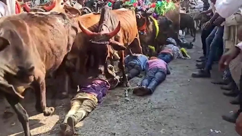 Badnagarin kaupungissa, Intiassa, nähtiin erikoinen näky viikonloppuna, kun lauma lehmiä juoksi maassa makaavien ihmisten päältä. Kyse ei ollut onnettomuudesta, vaan ikivanhasta hindukulttuurin rituaalista.