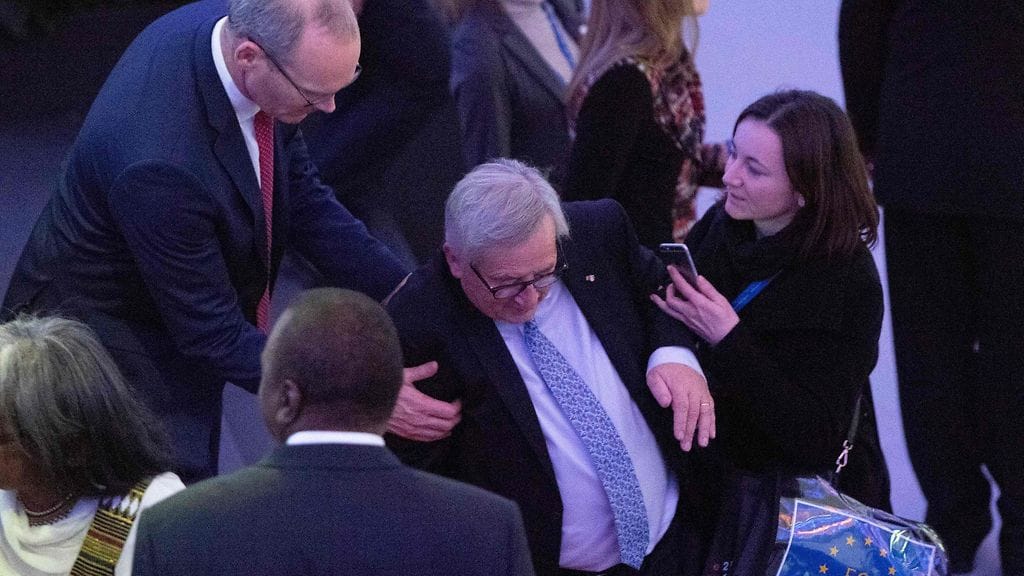 Eilen maanantaina Junckerilla oli ongelmia pysyä pystyssä EU-Afrikka-foorumin juhlaillallisella. Tilanne taltioitiin myös kansainvälisten kuvatoimisten valokuviin.