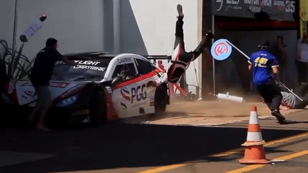 Kolme ihmistä loukkaantui vakavasti Brasiliassa Stock Light -autokilpailussa, kun auto ajautui varikolla ihmisten päälle.