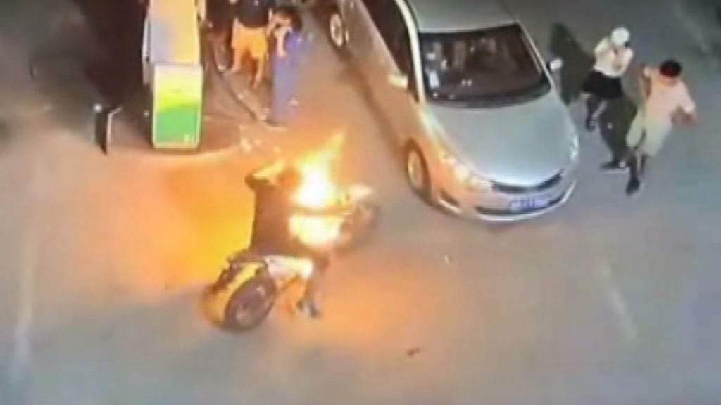 Videolla nähdään mies, joka yrittää startata moottoripyöränsä polkemalla, kun koko komeus leimahtaa yllättäen liekkeihin. Huoltoaseman työntekijän ripeän toiminnan ansiosta palo saadaan kuitenkin sammumaan nopeasti ja ennen sen suurempia vahinkoja.