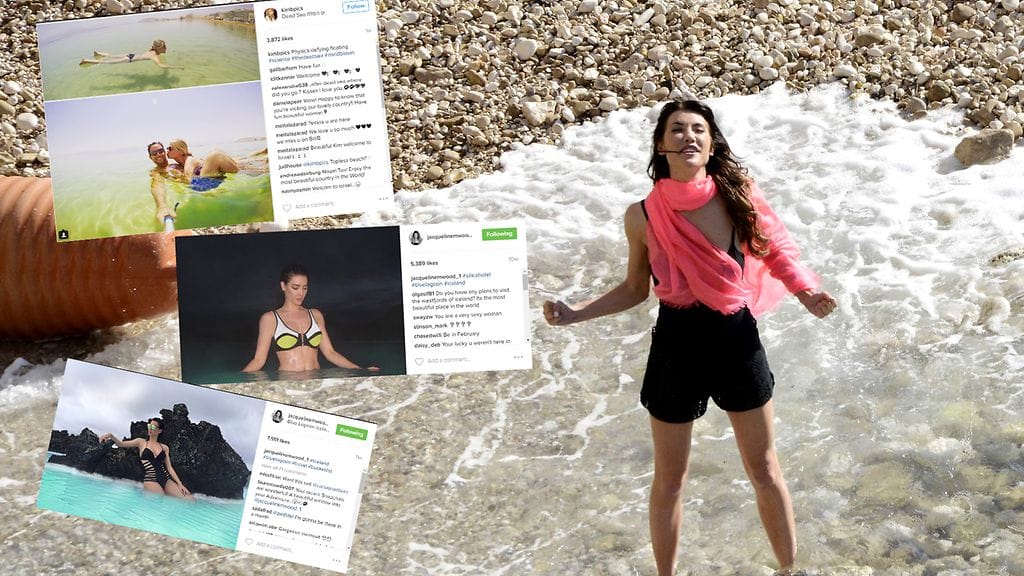 Hope Loganin roolissa hurmaava Kim Matula nauttii silminnähden Kuolleenmeren kelluttavasta suolavedestä. Miehensä kanssa lomaileva vaaleaverikkö vaikuttaa Instagram-kuvissaan ensinäkemältä olevan yläosattomissa, mutta tarkkaan katsottuna hänen päällään on vaalean roosat bikiniyläosat. Tähti ottaa rennosti myös auringonpalvontapuuhissa, nauttien virvokkeista ja lähellä patiolle näkyvästä rantamaisemasta.