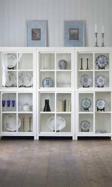 Tyyliltään klassinen Villinki muotoutuu moneksi. Sarjan tuotteita yhdistelemällä voi koota omiin tarpeisiin sopivan kokonaisuuden. Kuvan 210 x 170 sentin kokoinen vitriini maksaa 3 201 euroa, Boknäs.