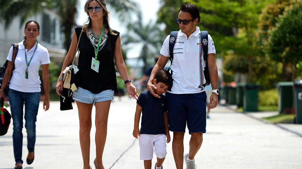 Massan Rafaela-vaimo ihastutti varikolla yhdessä pariskunnan lapsen, Felipinhon kanssa. Rosbergin Vivian-rakas puolestaan edusti kauniissa, valkoisessa kesämekossa. Pari on kesällä menossa naimisiin.
