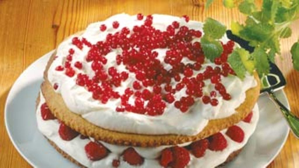 Tuoreena keksikakku on rouskuvan rapea ja seuraavana päivänä mukavan pehmeä! Kakun voi siis maun mukaan nauttia heti tai antaa pohjan pehmetä jääkaapissa. Jos vieraita on isompi joukko, tee korkeampi kakku ja käytä pohjaan kaksi pakettia kauramurotaikinaa.
