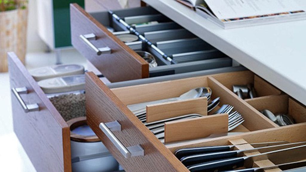–Lisäksi Rationell- ja Rationell Variera -sarjoissa on suuret valikoimat erilaisia sisusteita ja tilanjakajia, joilla voi järjestää keittiön kaapit ja laatikostot juuri omiin tarpeisiin sopiviksi.