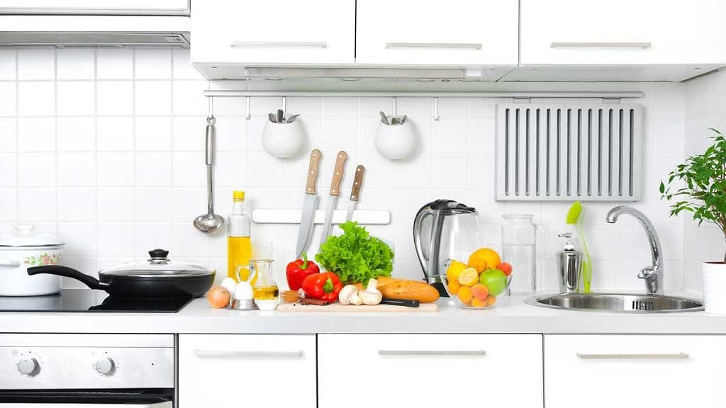 Puhtauttaan kiiltävä keittiö näyttää paremmalta kuin sotkuinen tai liikaa tavaraa tasoilla sisältävä keittiö. Pyyhi pölyt kaapeista ja tahrat kaapinovista ja tasoilta. Puhdista saumat huolellisesti ja nosta kaappeihin kaikki sellaiset ruoat ja keittiövälineet, joita et tarvitse jatkuvasti.