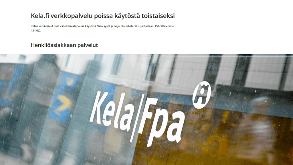 Kelan verkkosivut ovat väliaikaisesti pois käytöstä, Kela kertoo verkkosivuillaan.