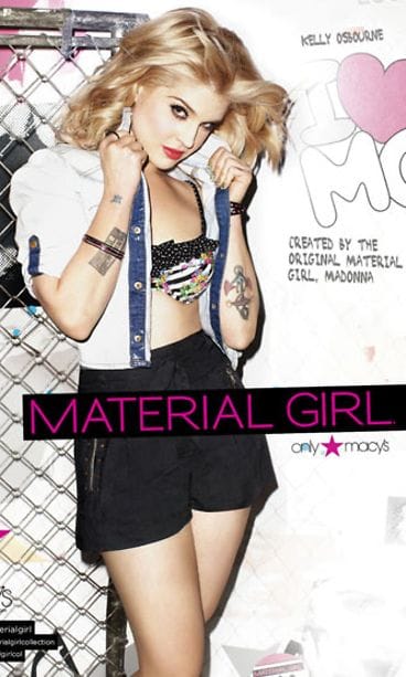 Muusikko Kelly Osbourne valittiin Madonnan ja tämän tyttären Lolan suunnitteleman Material Girl -malliston keulakuvaksi. Ensimmäiset kuvat mallistosta on nyt julkistettu.