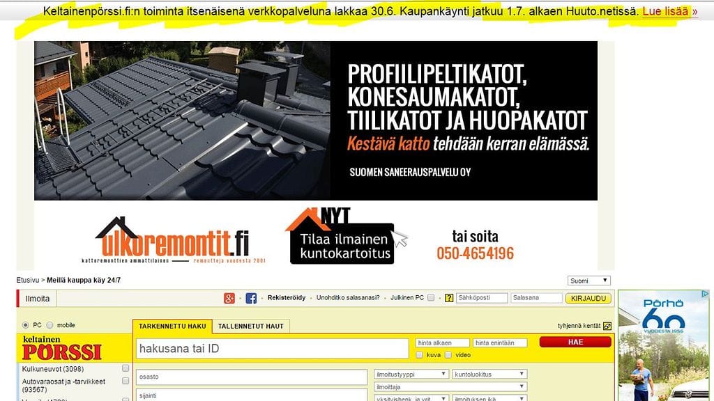 Keltainenpörssi.fi lopettaa toiminnan 30. kesäkuuta. Käyttäjiä ohjataan jatkossa kääntymään osto- ja myyntitarpeissa Huuto.netin puoleen.