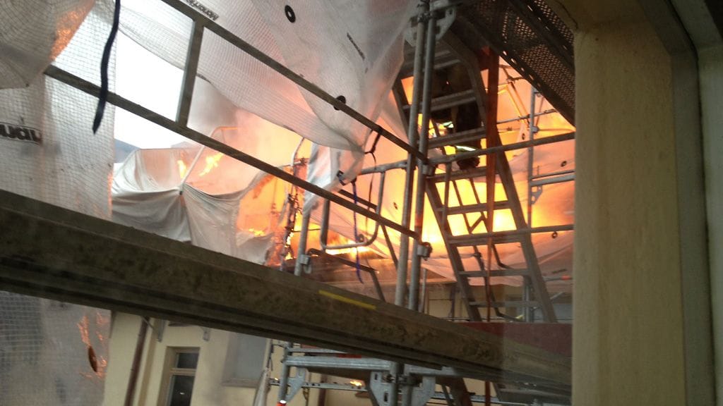 Päivystävän palomestarin mukaan asuinkiinteistössä on kattoremontti, ja koko ullakko oli tulessa parinkymmenen metrin korkeudessa. Talo oli huputettuna remontin takia.