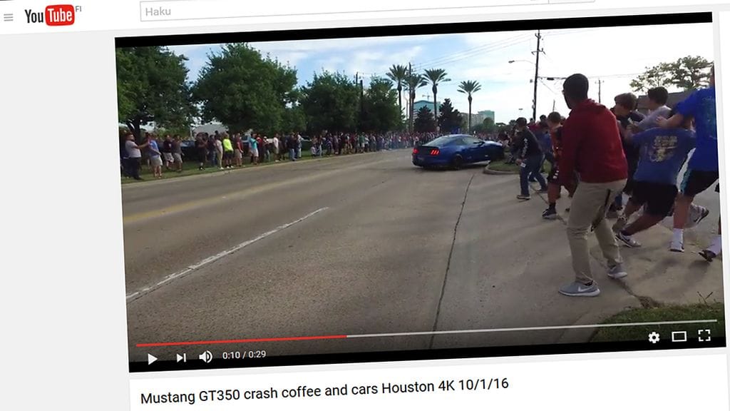 Lokakuun alussa järjestetyssä coffee & cars -kokoontumisajoissa Houstonissa, Teksasissa nähtiin läheltä piti –tilanne, kun Mustang GT350 oli vähällä ajautua väkijoukkoon.