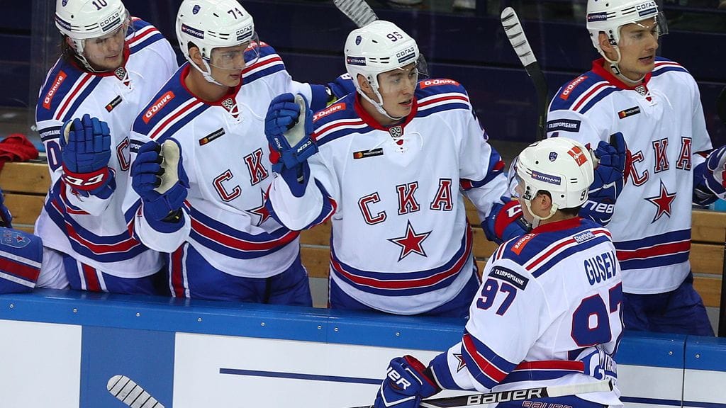 Tähtisikermä SKA karkasi puolustavalta mestarilta toisen erän puolivälissä, kun Nikita Gusev (osuma alla) ja Viktor Tihonov veivät vieraat 3-1-johtoon. SKA taputteli loppulukemat päätöserässä.