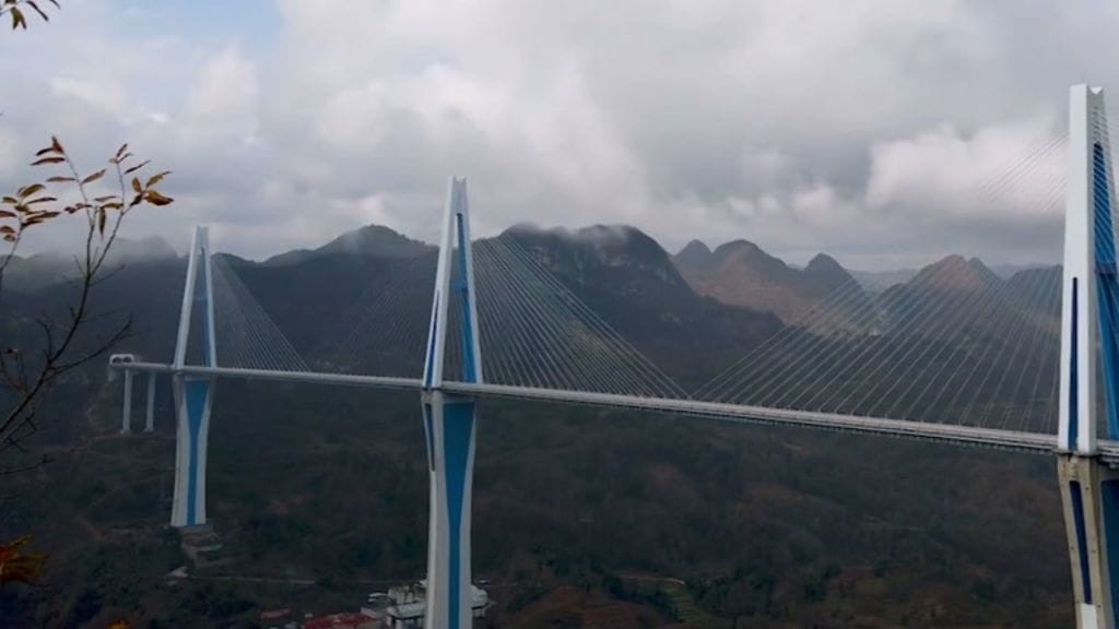 Vuoden ensimmäisenä päivänä Lounais-Kiinan Guizhoun provinssiin avattu Pingtangin silta on melkoinen ilmestys.
