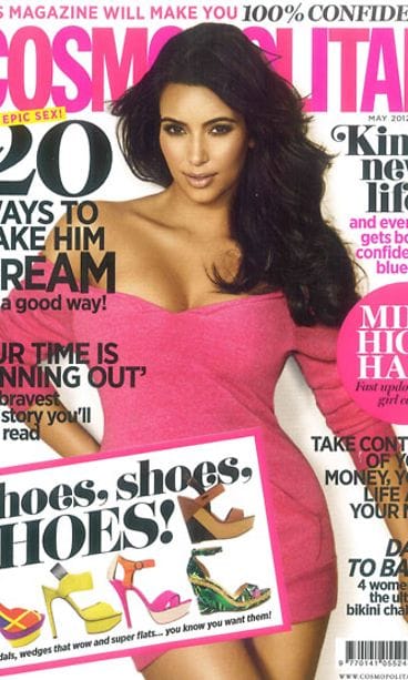 Tosi-tv-tähti Kim Kardashian poseeraa luonnollisena ja viehkeänä tuoreen Cosmopolitan-lehden kannessa.