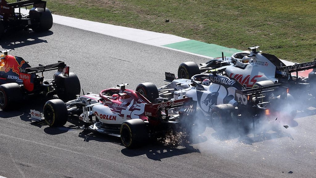 Tilanteessa Haasin Romain Grosjean osui AlphaTaurin Pierre Gaslyyn, joka joutui puristukseen kahden auton väliin. Näistä toinen oli Räikkönen, joka sai puolestaan osuman Gaslystä.