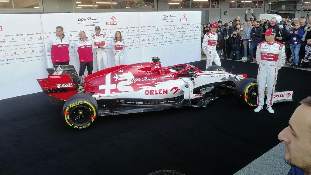 Kimi Räikkönen antoi lyhyet kommentit, kun Alfa Romeon auto F1-kaudella 2020 oli julkaistu Barcelonan radalla juuri ennen testien alkua.