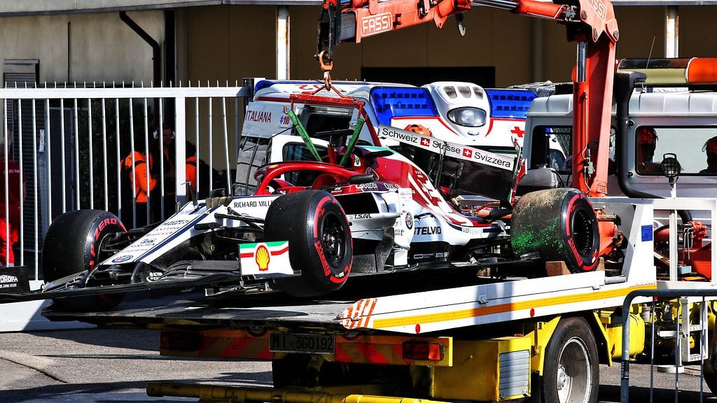 Alfa Romeo joutui tekemään osamuutoksen sen jälkeen, kun se oli tutkinut Räikkösen auton. Kokenut suomalaiskuski ajautui vauhdilla ratavalleihin lauantain aika-ajojen kolmannessa osiossa.