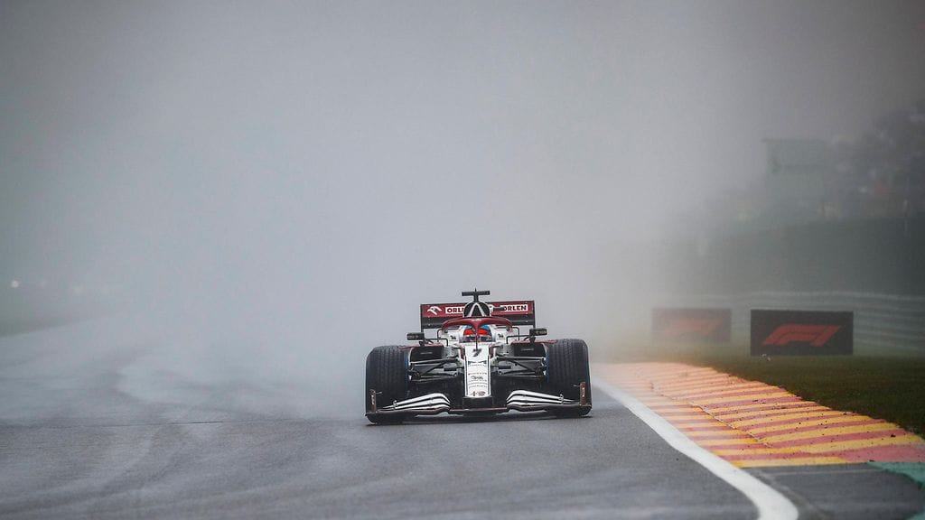 Alfa Romeon Kimi Räikkönen harmitteli Belgian tynkäkisan jälkeen monen tunnin mittaista odottelua.