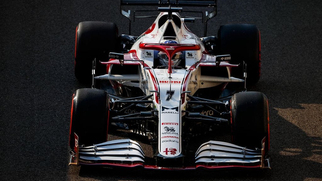 Alfa Romeon Kimi Räikkösen F1-uran viimeinen aika-ajo päättyi lyhyeen. Alfa Romeolla riitti vauhtia, mutta pieni luisu pilasi kaiken.
