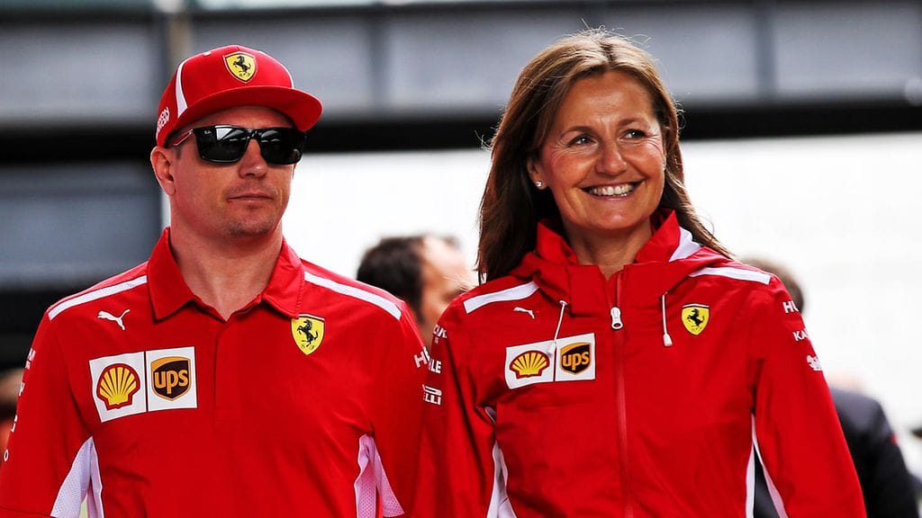 Kimi Räikkösen vierellä on oma vaimo, mutta viimeiset neljä vuotta kisatapahtumissa hänen mukanaan on kulkenut Ferrarin tallipäällikön Maurizio Arrivabenen vaimo Stefania Bocchi.