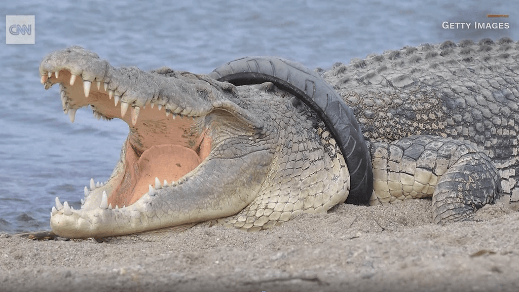 Renkaan materiaali ei veny, joten krokotiili saattaa hitaasti tukehtua, jos rengasta ei saada irrotettua.