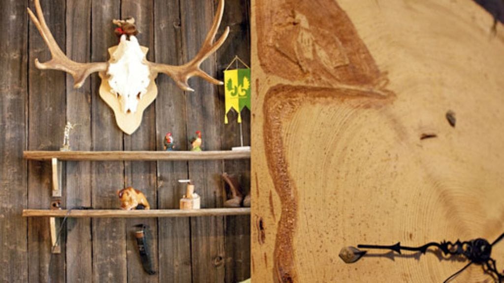 Ensin Jokela maalasi huoneensa lastulevyseinät harmaalla, sitten naulasi ja osin proppasi laudat seinille. Työpöydän yläpuolelle hän nikkaroi kaksi hyllyä viireille ja muistoesineille. Itse ammutun hirven kallo sarvineen vartioi tietokonetta hyllyjen yläpuolelta.
