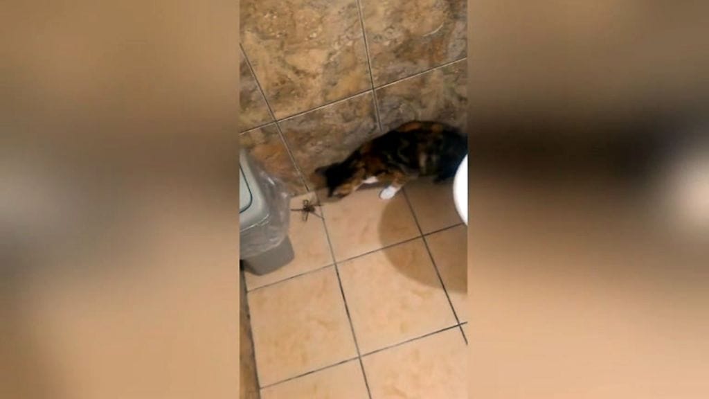 Lele-kissa oli wc-tiloissa yksin, kun omistaja Sue Weng kuuli sen rapistelevan siellä yksinään. Weng järkyttyi melkoisesti, kun havaitsi kissansa löytäneen vessasta 25-senttisen hämähäkin, jota se kiinnostuneena käpälöi.