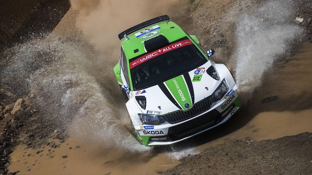 17-vuotias Rovanperä ajautui ongelmiin kisan toisella erikoiskokeella. Hän oli laskeutunut Skoda-autollaan hypystä ison kiven päälle. Kivi oli rikkonut autosta jäähdyttimen.