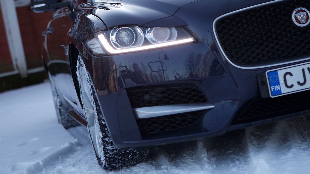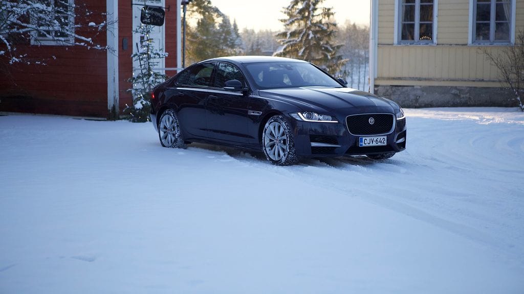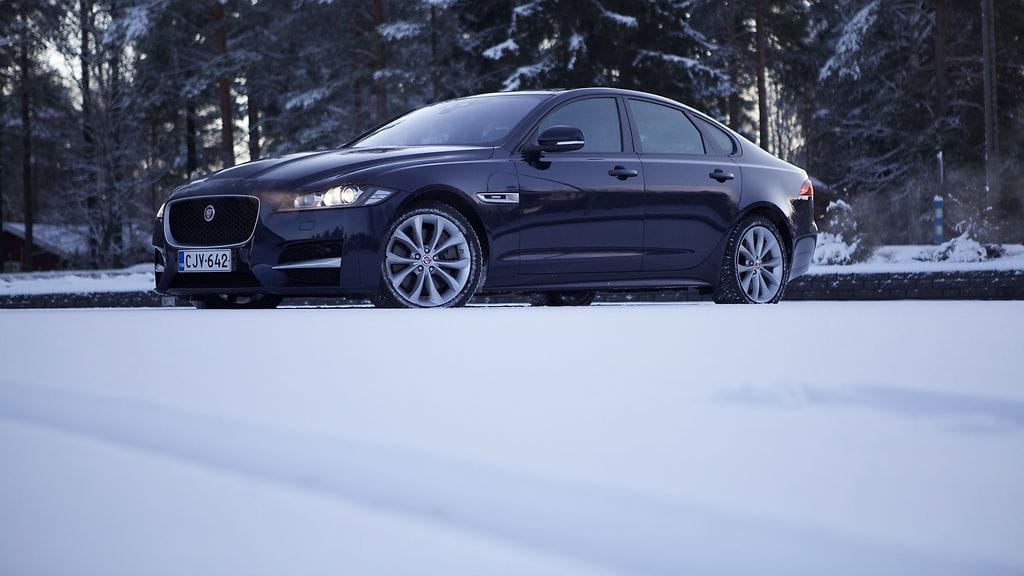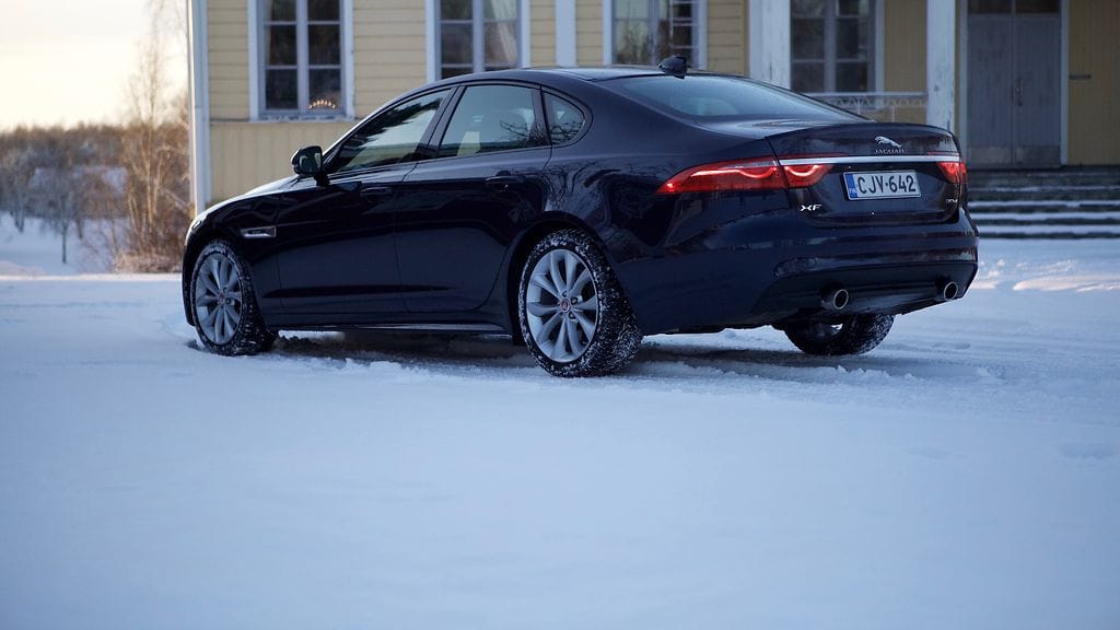 Jaguar esitteli täysin uuden XF:n uuden keskiluokan XE-mallin vanavedessä. Ensisilmäyksellä autot saattaa sekoittaa varsin helposti, mutta pitemmällä katselulla XF:n huomaa olevan luokkaa suurempi auto. Edeltäjään verrattuna auton tunnistaa helpoiten perän uusista linjoista ja etenkin R-Sport-versiossa pakoputkien asettelusta. Ajovaloissa on pitkälti samaa aggressiivista muotoa, joka tuli XF:ään edellisen korimallin faceliftin yhteydessä. Koeajoauton R-Sport-varustelu tuo ulkonäköön vielä aavistuksen vakiota sporttisemman ilmeen korisarjan muodossa.