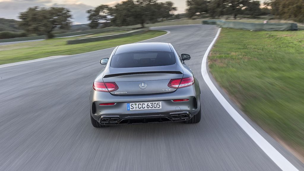 Kaksiovista versiota varten AMG on myös muokannut auton taka-akselia selvästi enemmän kuin se on tehnyt sedanin kanssa. Raideleveyttä on kasvatettu, ja takana on myös lisää rautaa tukevoittamassa perää. Kaikki tämä auttaa mutka-ajossa. Perää voi ohjata nautinnollisen helposti kaasulla, ja auto myös taittuu herkästi mutkiin. Coupe tuntuu myös erittäin tasapainoiselta. Se herättää myös kuskissa enemmän luottamusta kuin sedan.