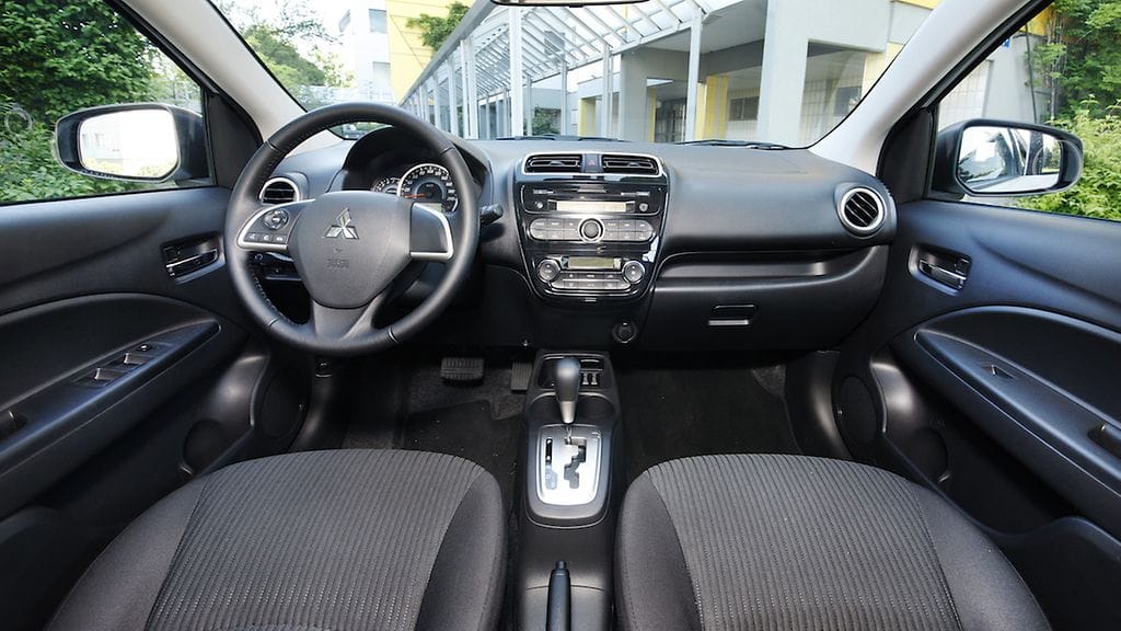 Mitsubishi Attrage on Space Starin porrasperäinen versio eli 80-hevosvoimainen 4,25 metriä pitkä konttiperäinen perusauto. Tämän tapaisia autoja on Aasia pullollaan.