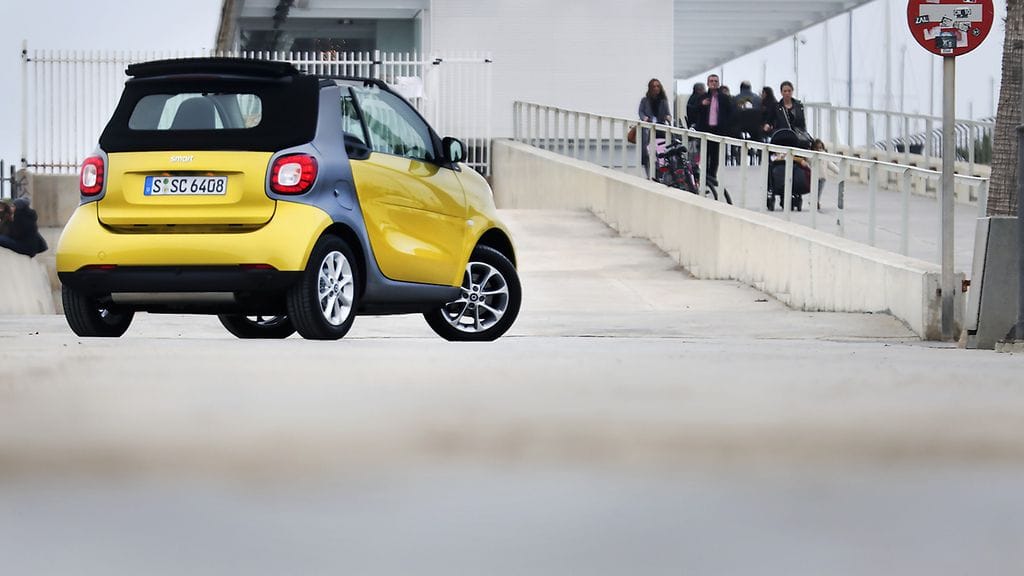 Talvi ei ole välttämättä lämmin edes Espanjassa. Lämpömittarin neula kipuaa 14 asteeseen uuden Smart Cabrion koeajolla Valenciassa, ja kylmä tuuli puhaltaa Välimereltä. Katto on silti pakko poistaa. Ihan pakko.